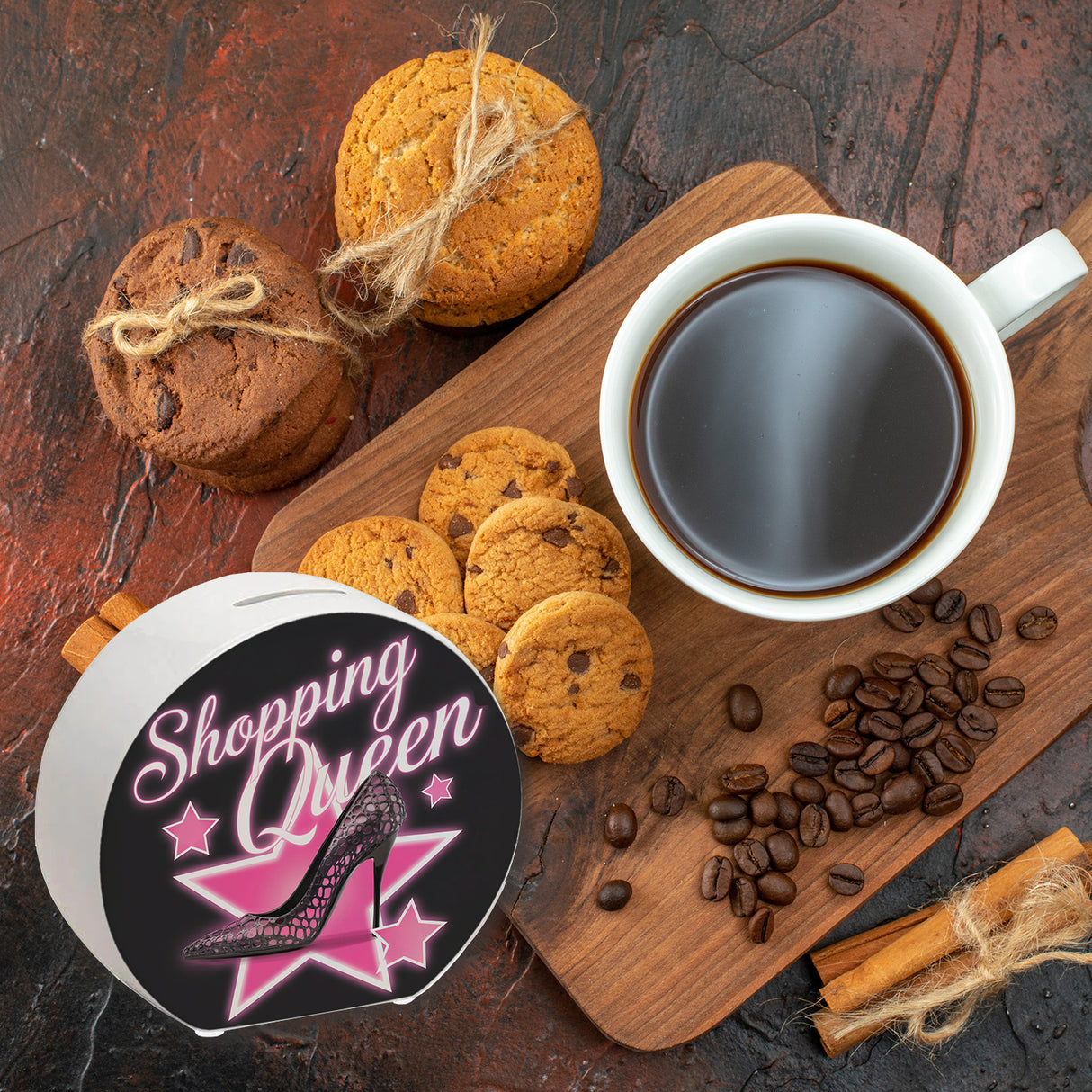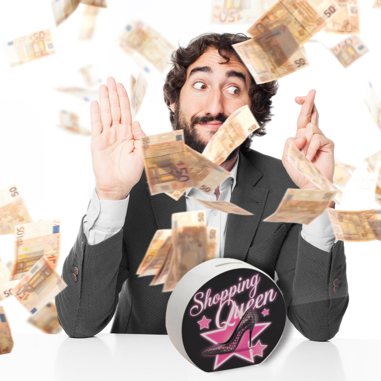- Sei die Shopping Queen, die du immer sein wolltest! Diese stilvolle Spardose ist nicht nur praktisch, sondern auch ein echter Hingucker. Wer sagt, dass Sparen nicht glamourös sein kann?