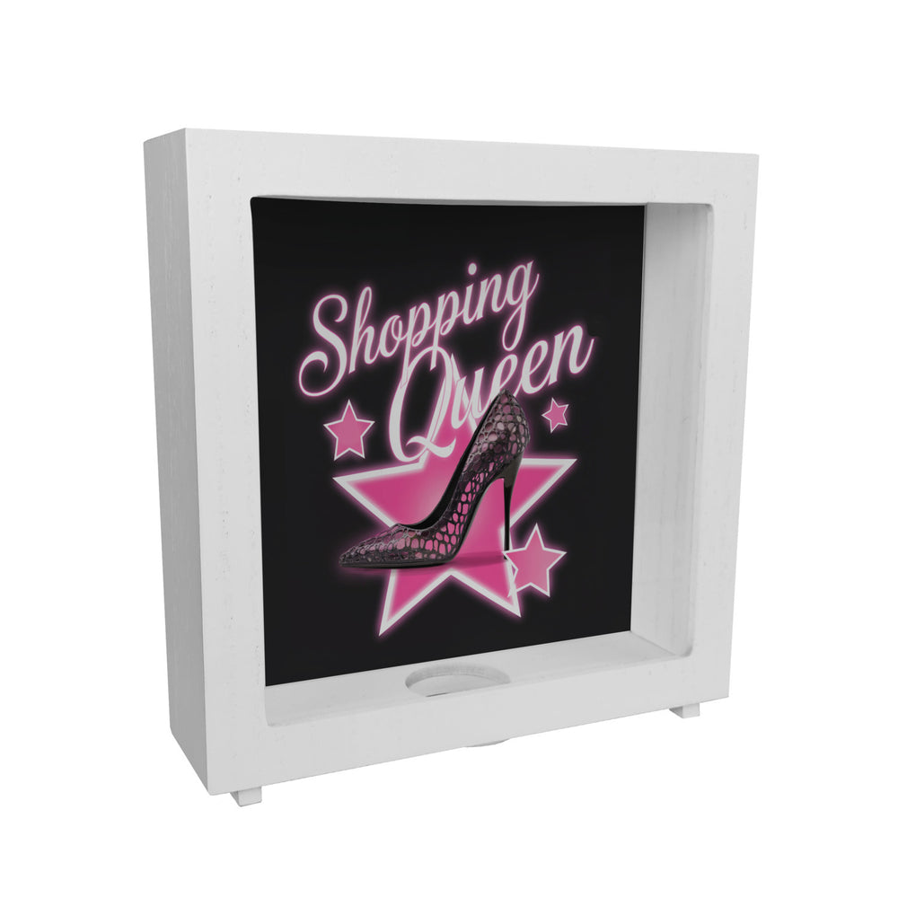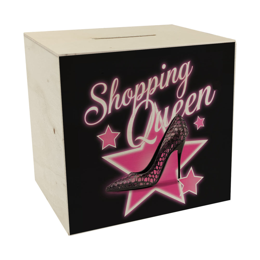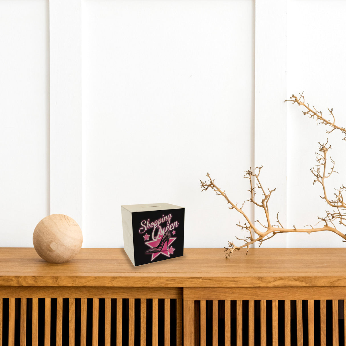 - Diese Spardose ist ein Muss für alle Shopping-Liebhaberinnen! Mit einem schicken Schuh auf einem pinken Stern, schreit sie förmlich "Shopping Queen" – perfekt für alle, die ihre Ersparnisse stilvoll verwahren möchten!