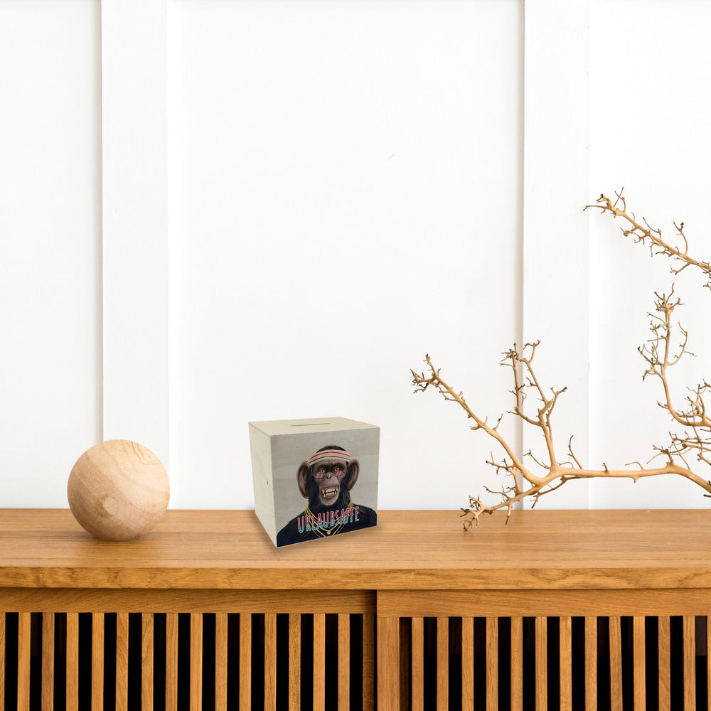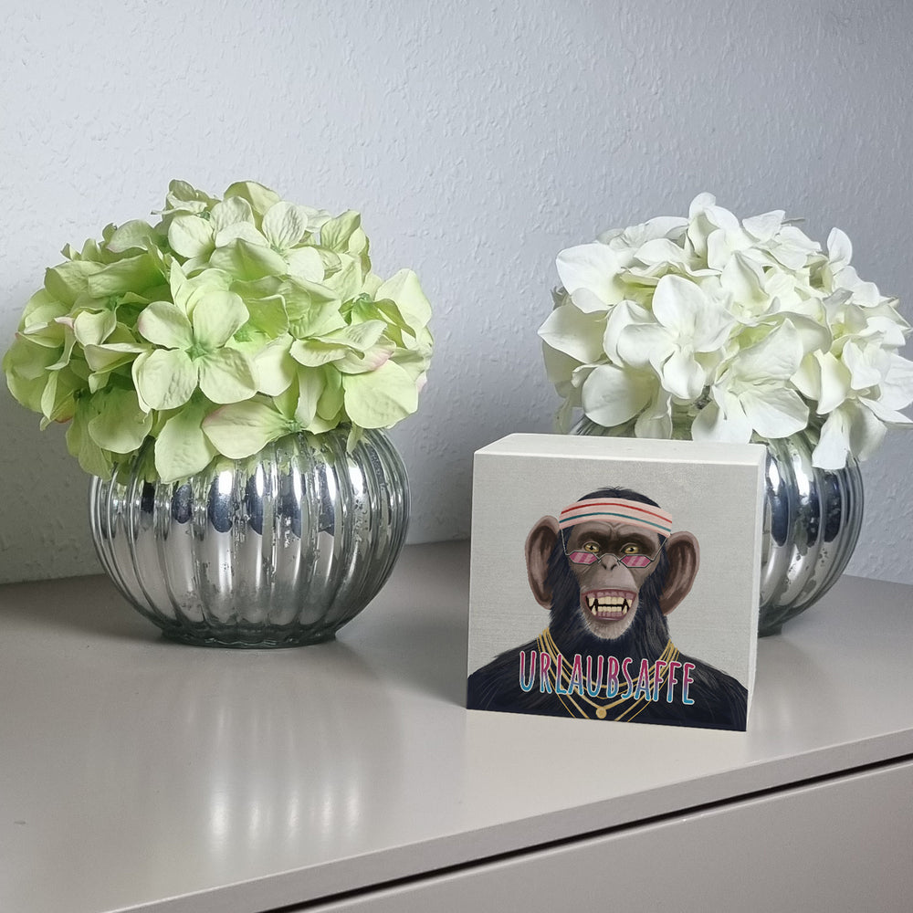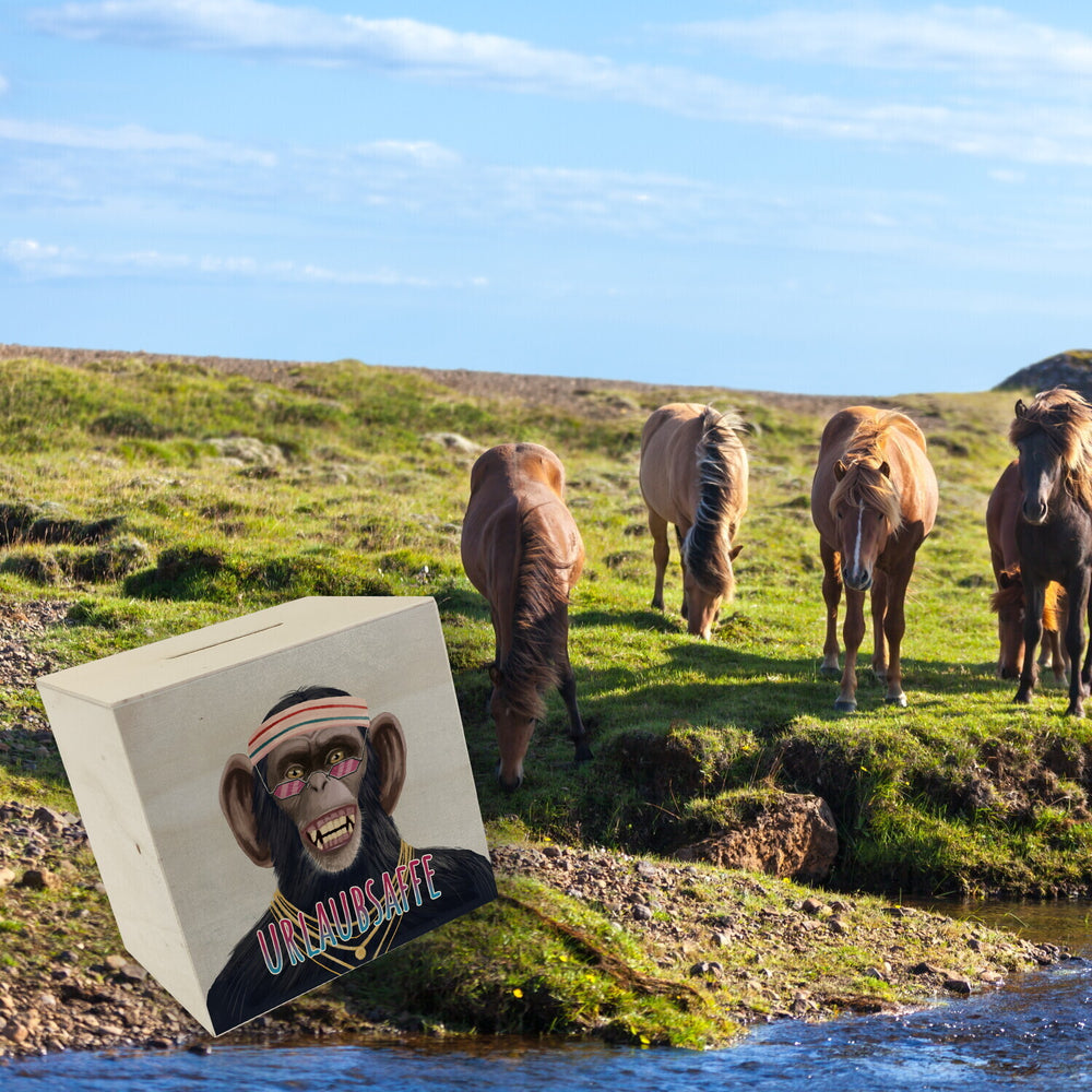 • 1x Spardose mit lustigem Tier und Text für Urlauber - Urlaubsaffe in der gewählten Ausführung