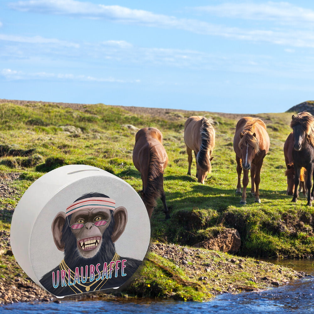 Spardose mit lustigem Tier und Text für Urlauber - Urlaubsaffe