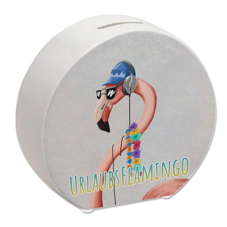 Spardose mit lustigem Tier und Text für Urlauber - Urlaubsflamingo