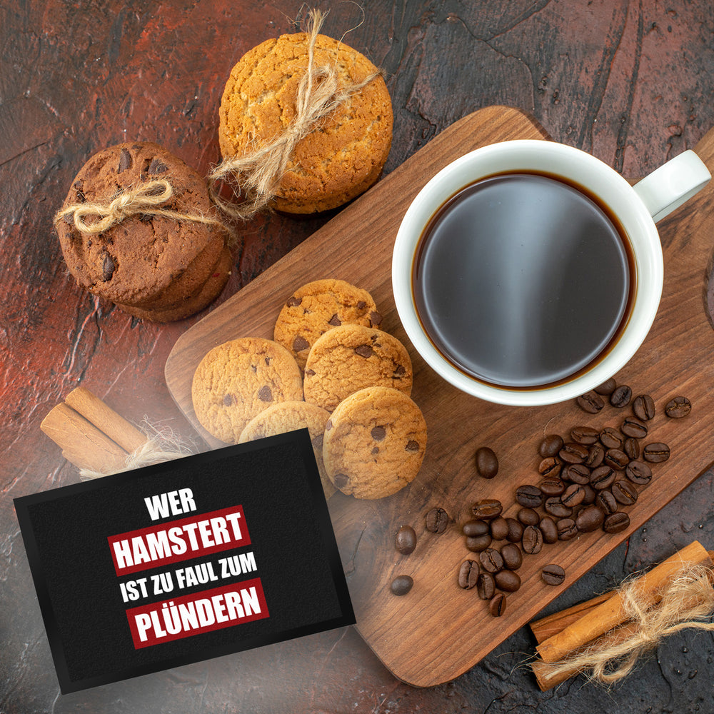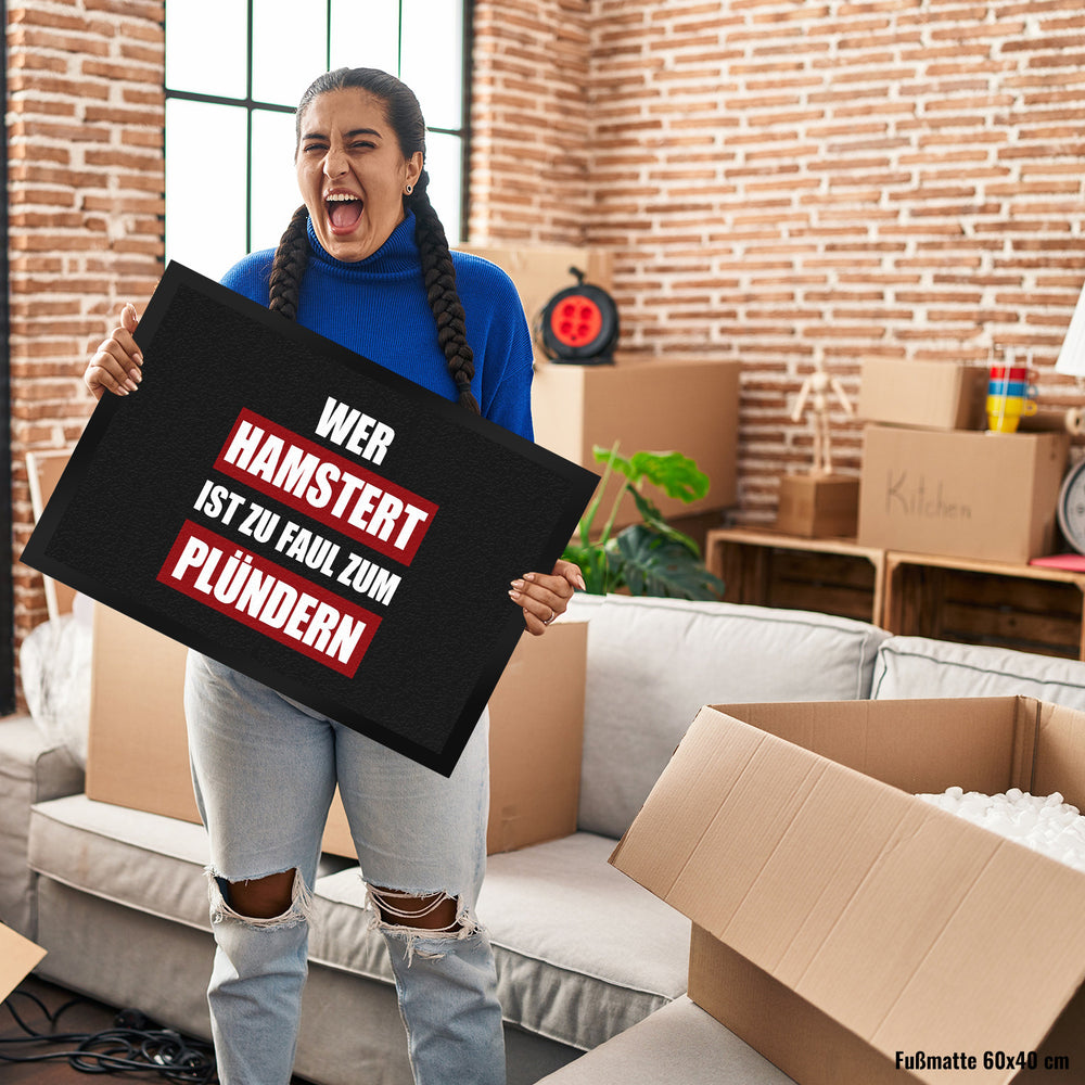 - 1x Wer hamstert, ist zu faul zum plündern Fußmatte mit Motiv in der gewählten Größe