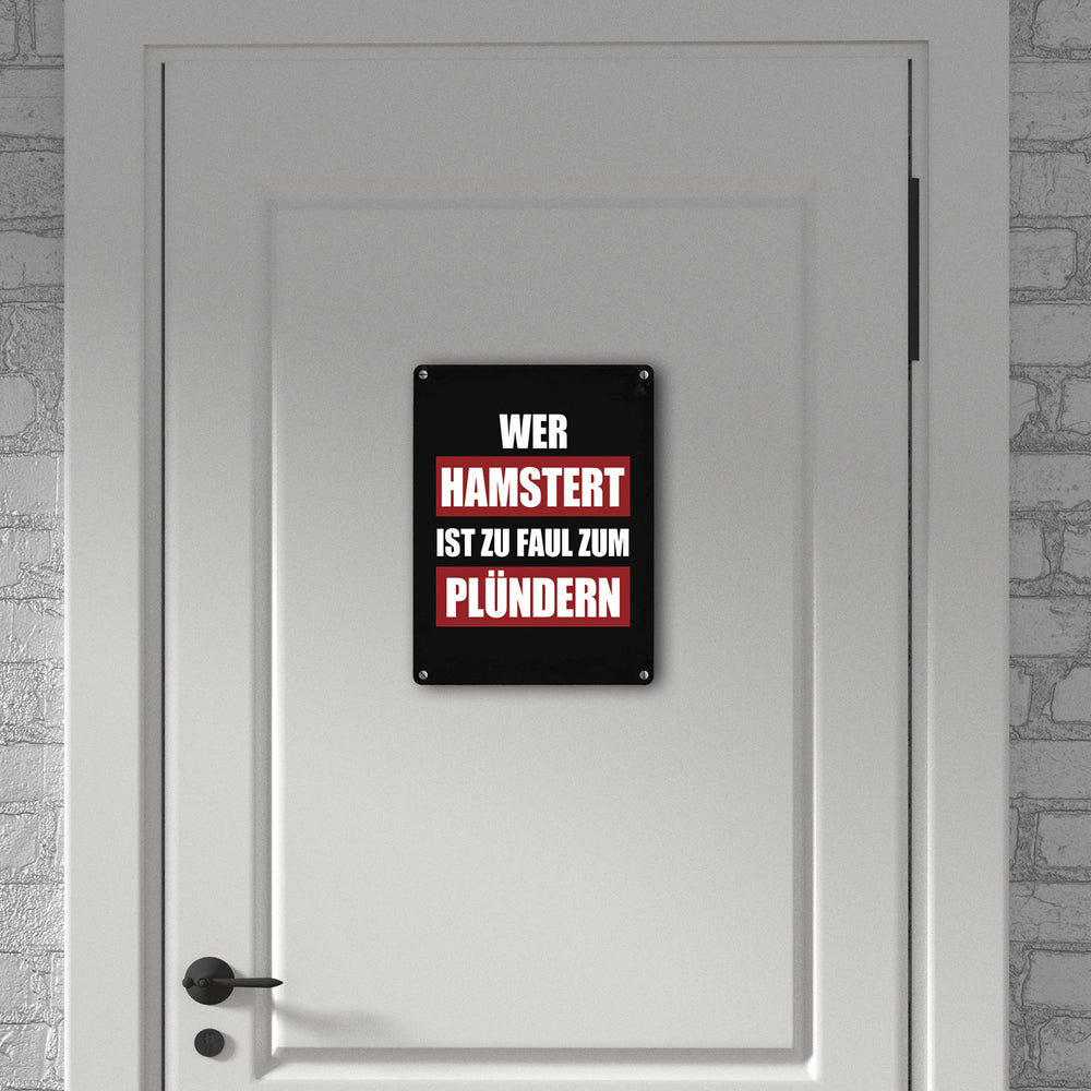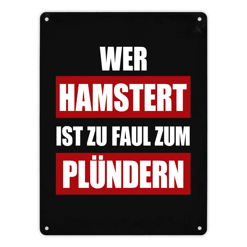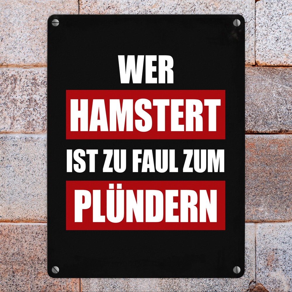 Wer hamstert ist zu faul zum plündern Metallschild