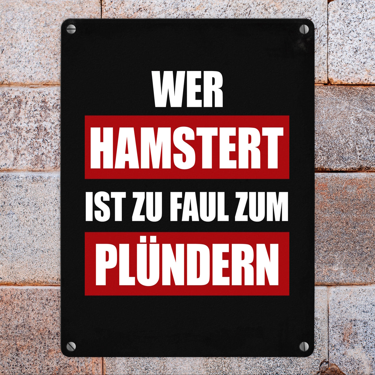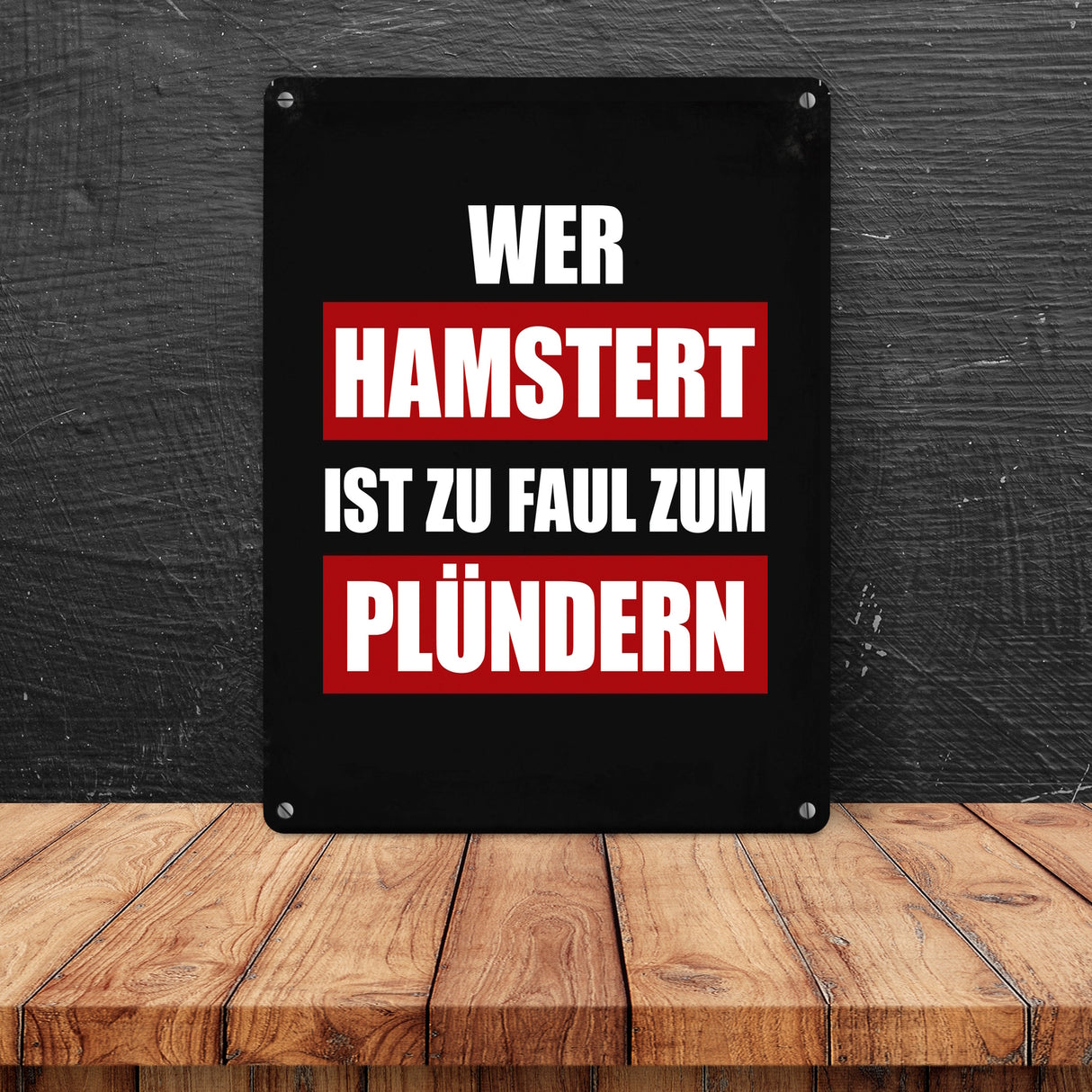 - 1x Wer hamstert ist zu faul zum plündern Metallschild in der gewählten Größe