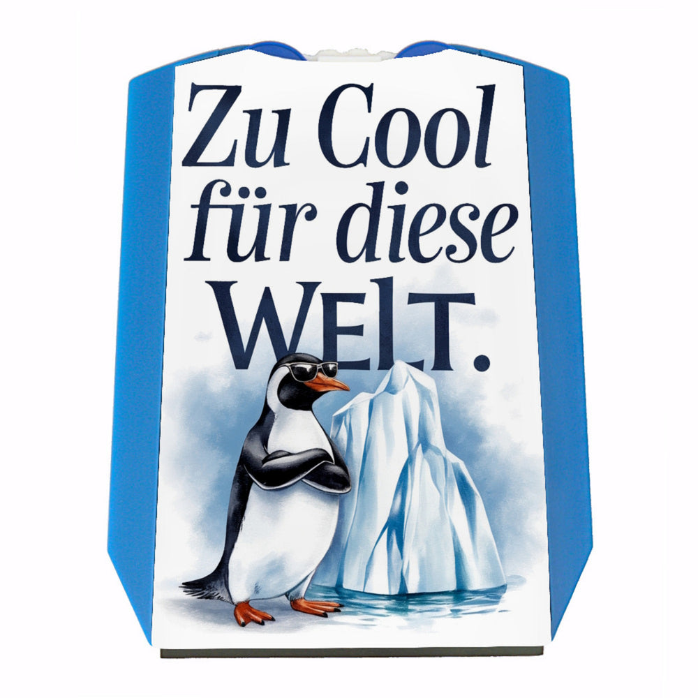 - Die humorvolle Parkscheibe "Zu cool für die Welt" zeigt einen frechen Pinguin mit Sonnenbrille, der selbstbewusst an einen Eisberg lehnt. Das Motiv ist bunt, mit kräftigen Farben, und ein niedliches Herzsymbol rundet das Design ab. Ein witziger Spruch in Fettschrift sorgt für den ultimativen Coolness-Faktor im Auto.