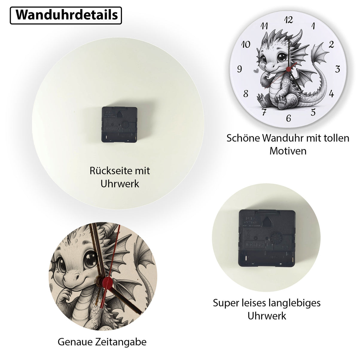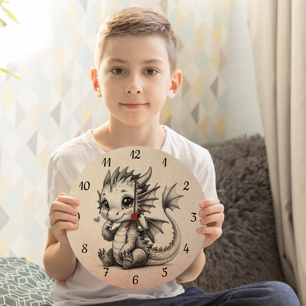 • 1x niedlicher Babydrache Wanduhr in der gewählten Variante
