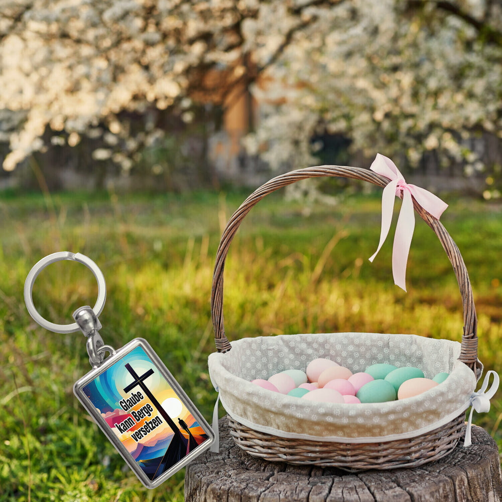 Berg mit Kreuz Schlüsselanhänger mit Spruch: Glaube kann Berge versetzen - Standard ist auf Lager und wird versandt, sobald es wieder verfügbar ist