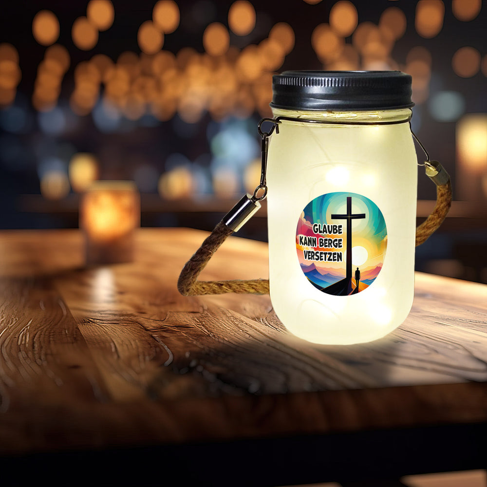 • Holen Sie sich jetzt dieses mit viel Liebe designte und bedruckte Solarlicht! Es vereint Qualität, Kreativität und Nachhaltigkeit und verschönert jeden Außenbereich. Lassen Sie sich inspirieren von der Kraft des Glaubens, die Berge versetzen kann. Bestellen Sie jetzt und machen Sie jemandem eine Freude!