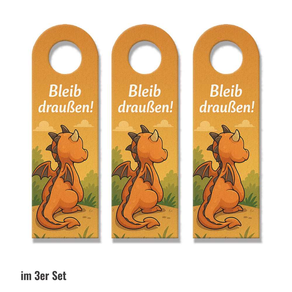 - 1x Drachen Cartoon Bleib draußen! Komm rein! Türhänger in der gewählten Setgröße