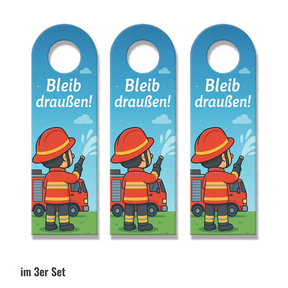 - 1x Feuerwehrmann Cartoon Bleib draußen! Komm rein! Türhänger mit Spruch für Kinder in der gewählten Setgröße