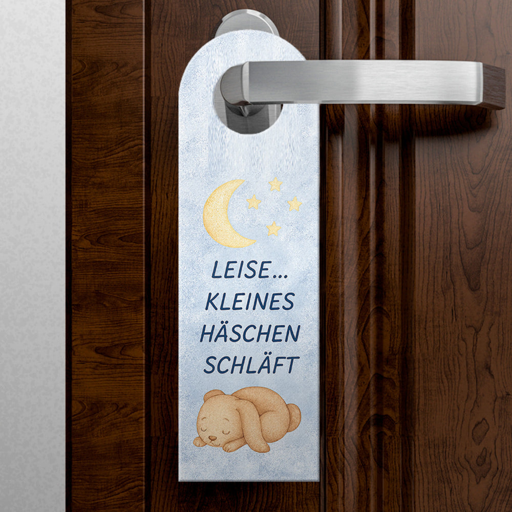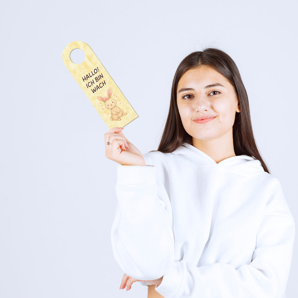 - 1x Häschen Ich bin wach kleines Häschen schläft Türhänger für Kinderzimmer in der gewählten Setgröße