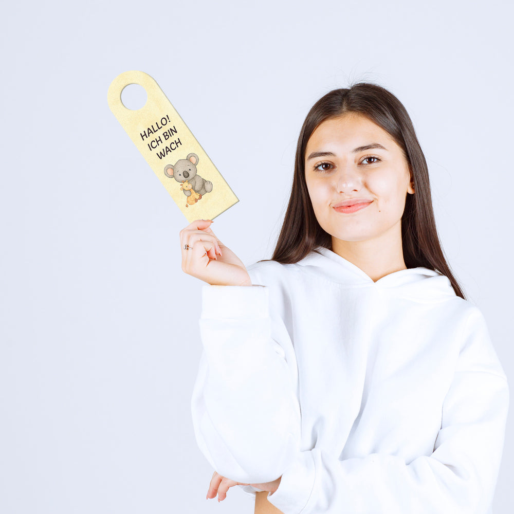 - 1x Koala Ich bin wach Bärchen träumt Türhänger fürs Kinderzimmer in der gewählten Setgröße