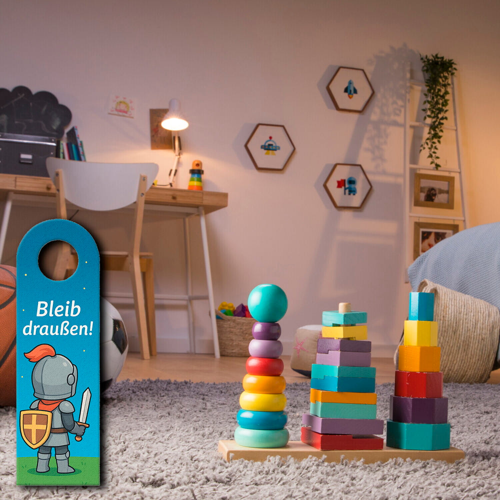 • Unser Ritter Drache Bleib draußen! Komm rein! Türhänger bringt das märchenhafte Abenteuer direkt an die Zimmertür. Mit einem mutigen Ritter, einem feuerspeienden Drachen und einem Himmel voller funkelnder Sterne, wird jedes Kinderzimmer zum Ritterreich. Die leuchtenden Farben und kinderfreundlichen Figuren laden zum Träumen ein und sind ein wahrer Hingucker!