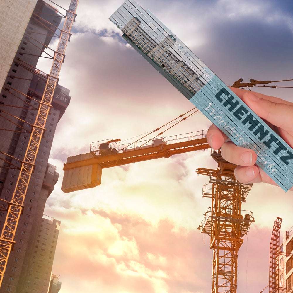 streetline Chemnitz Doppelrathaus Meterstab aus Holz
