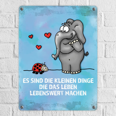 €15,95Grundpreis /Nicht verfügbar Metallschild mit Elefant & Käfer Motiv und Spruch: Es sind die kleinen Dinge...