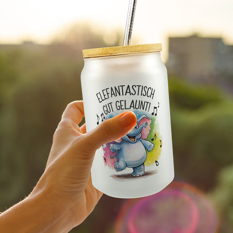 Tanzender Elefant - Elefantastisch gut gelaunt Trinkglas mit Bambusdeckel