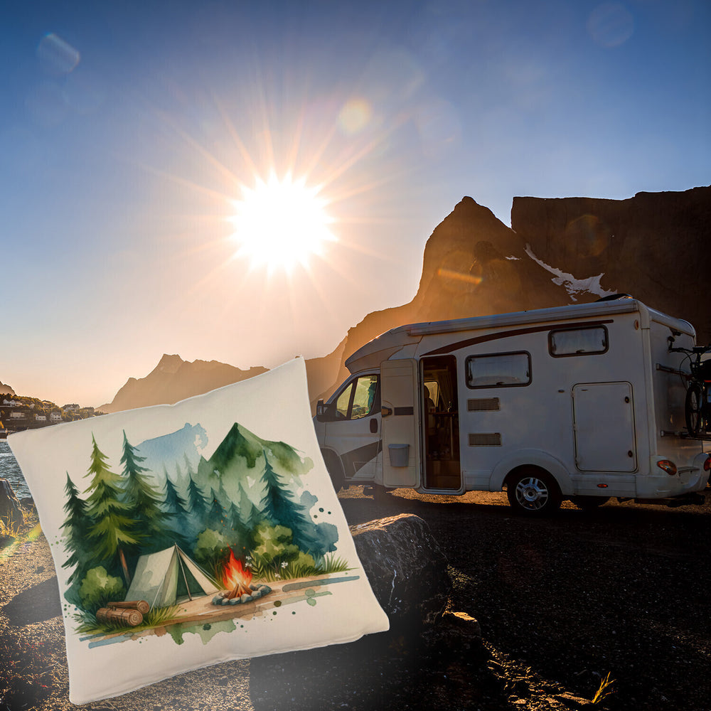 - Wer sagt, dass man draußen im Wald auf Kuschelkomfort verzichten muss? Mit dem "Camping im Wald Kissen" holst Du Dir die Wildnis ins Zelt! Zelte, knisterndes Lagerfeuer, und geheimnisvolle Bäume - dieses Design ruft förmlich nach Marshmallows und Gruselgeschichten. Ein Must-have für gemütliche Lagerfeuersitzer!