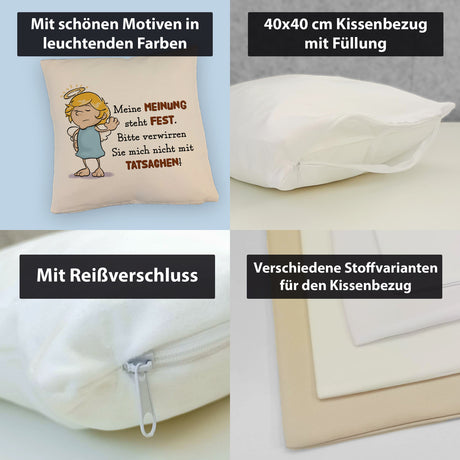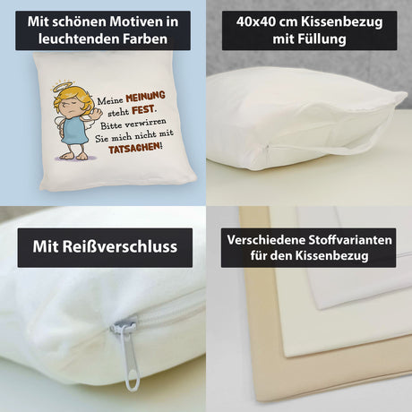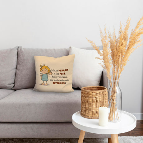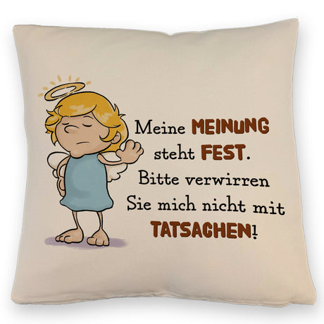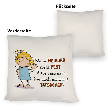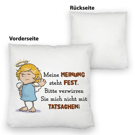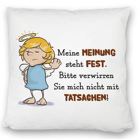 Engel Kissen mit Spruch - Verwirre mich nicht mit Tatsachen in meiner Meinung