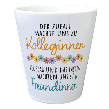 • Dieser Blumentopf ist nicht nur ein Blumentopf – er ist ein echter Hingucker fürs Büro! Mit dem spritzigen Spruch: "Der Zufall machte uns zu Kolleginnen. Der Spaß und das Lachen machte uns zu Freundinnen." ist er ein super Geschenk für jede Lieblingskollegin!