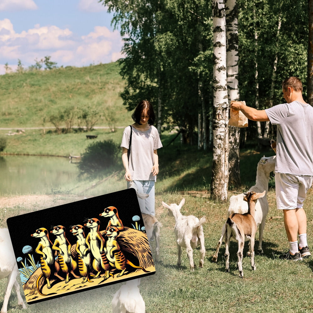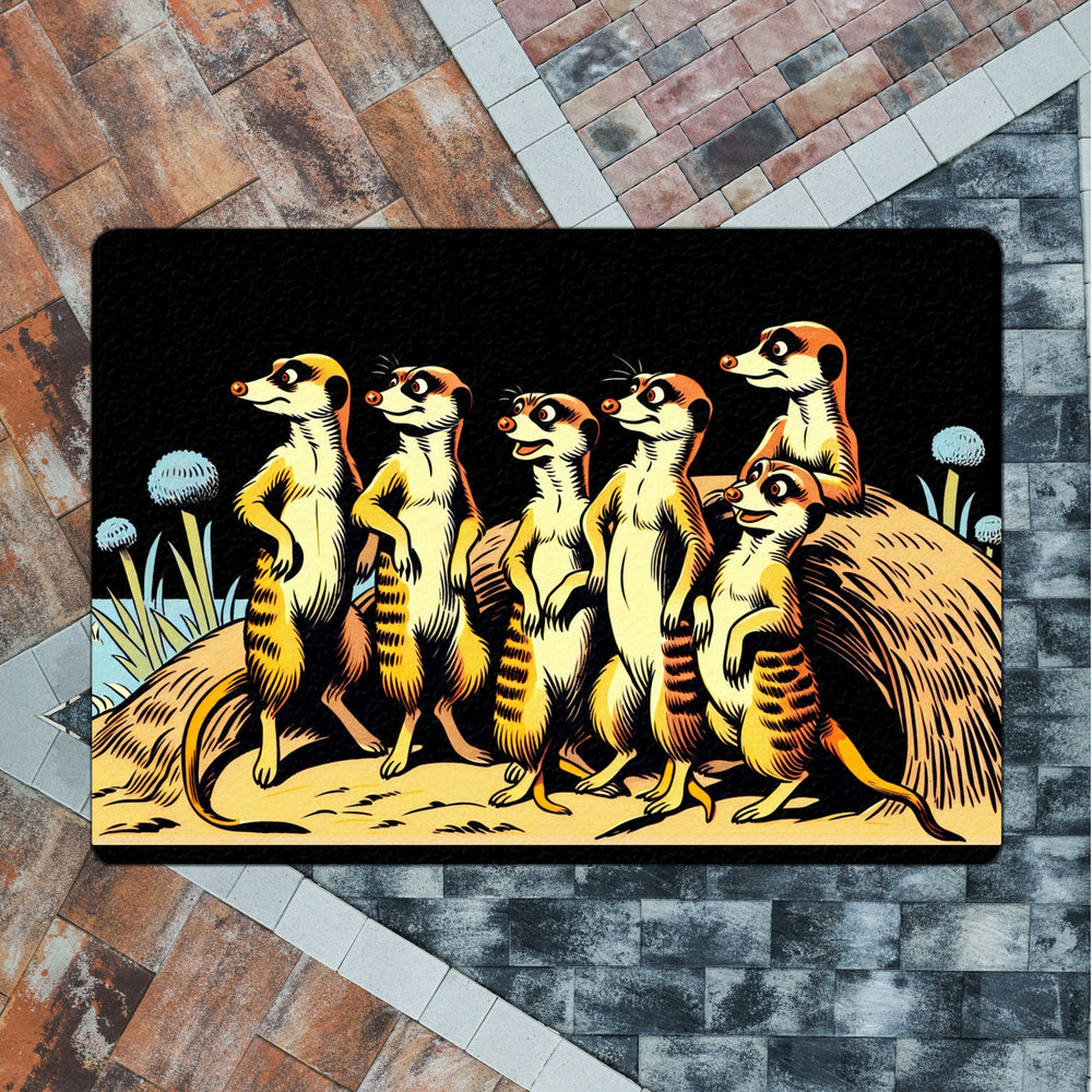 • "Grüße von der Erdmännchen-Wache! Die Erdmännchen Familie Fußmatte empfängt dich mit einem wachsamen Lächeln. Unsere kleinen Freunde aus der Savanne schauen lustig aus ihren Löchern hervor und sorgen beim Eintreten für die Extraportion Gute Laune!"