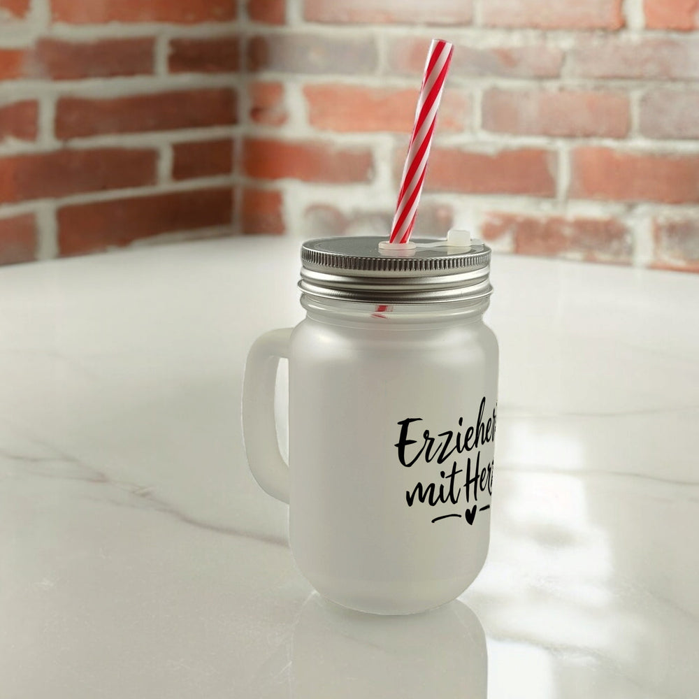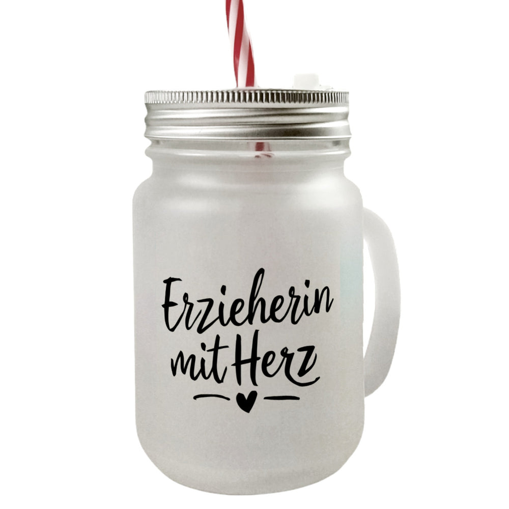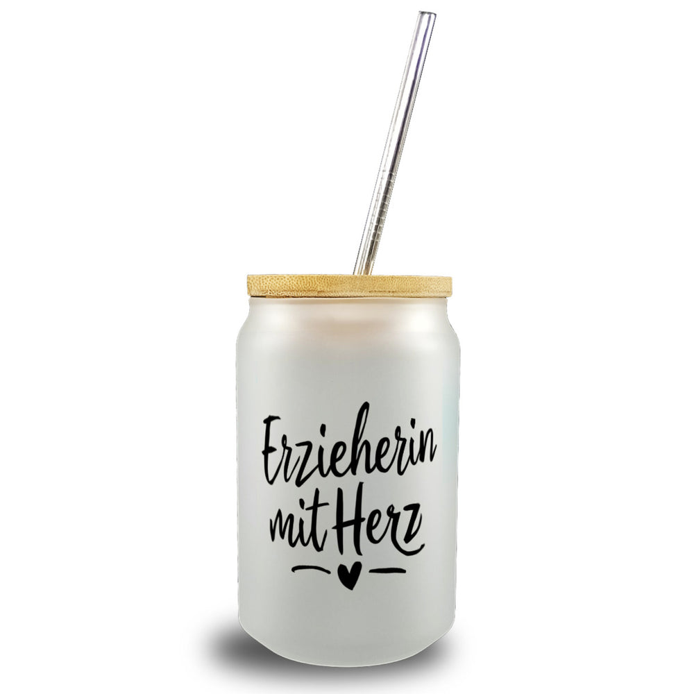 Erzieherin mit Herz Trinkglas mit Bambusdeckel für Pädagogen
