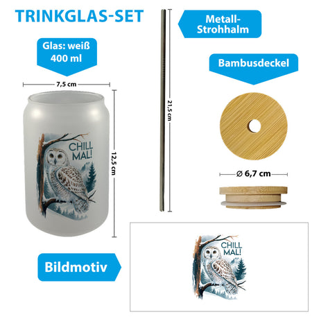 €21,95Grundpreis /Nicht verfügbar Chill mal Trinkglas mit Bambusdeckel Schneeeule auf Ast