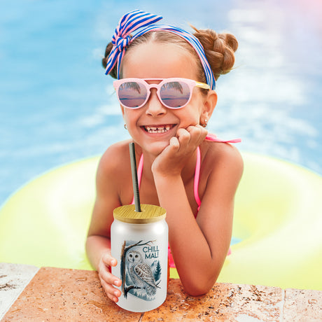 €9,95Grundpreis /Nicht verfügbarAuf LagerCool bleiben Trinkglas mit Bambusdeckel Schneeeule mit Sonnenbrille