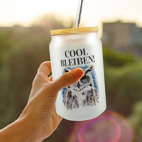 Ab €16,95Grundpreis /Nicht verfügbarAuf LagerSchneeeule mit Sonnenbrille Cool bleiben Trinkglas mit Bambusdeckel