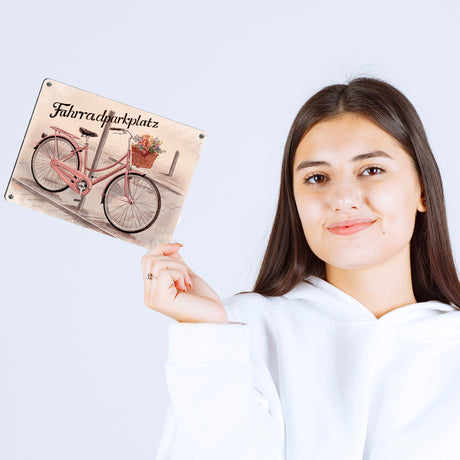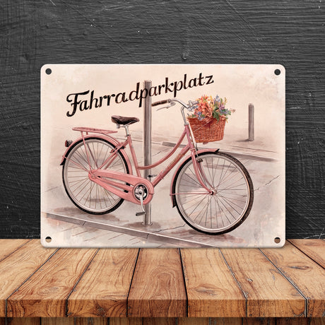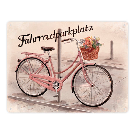 Ab €8,95Grundpreis /Nicht verfügbarAuf LagerFahrradparkplatz Metallschild in 15x20 cm mit rosa Drahtesel und Blumenkorb