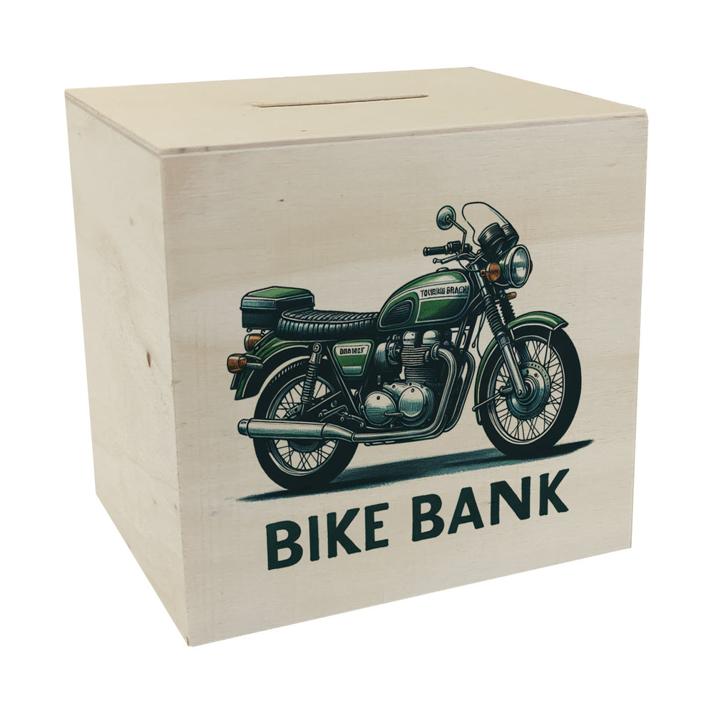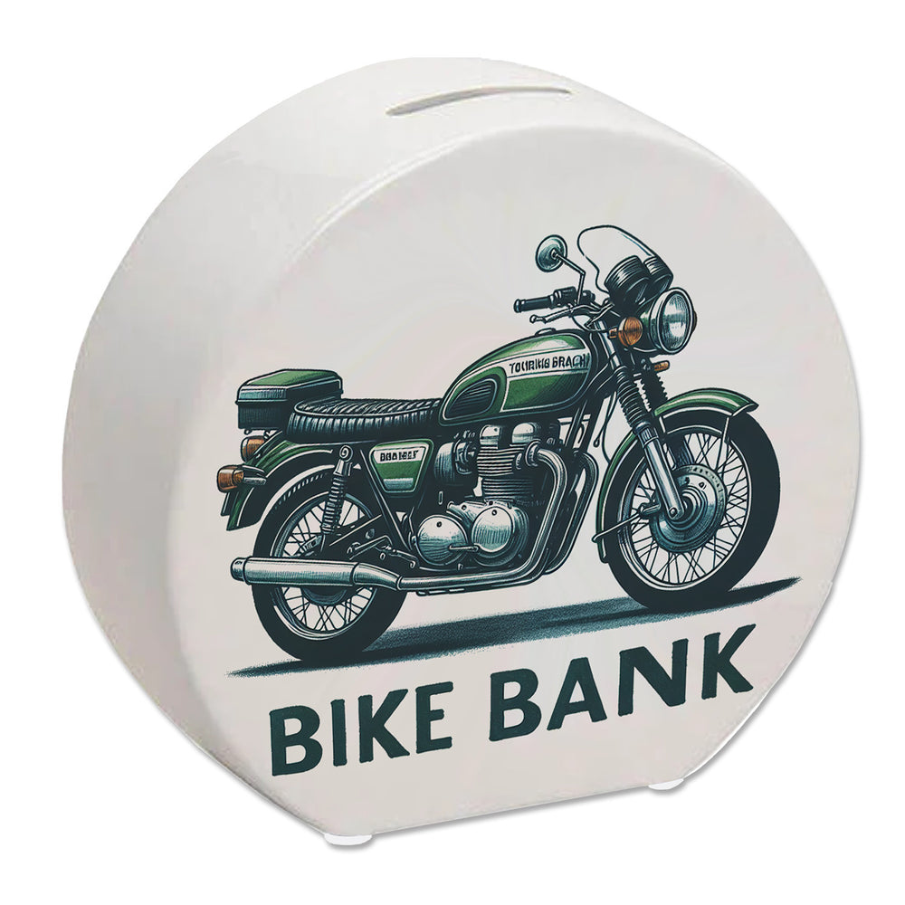 - Treffen Sie Mr. Green! Unsere Touring Motorrad Spardose in britisch racing grün. Dieses charismatische Zweirad-Design mit dem frechen Spruch "Bike Bank" bringt das ultimative Racing-Gefühl direkt zu Ihnen nach Hause. Ideal für alle, die auf zwei Räder und bisschen britischen Charme stehen!