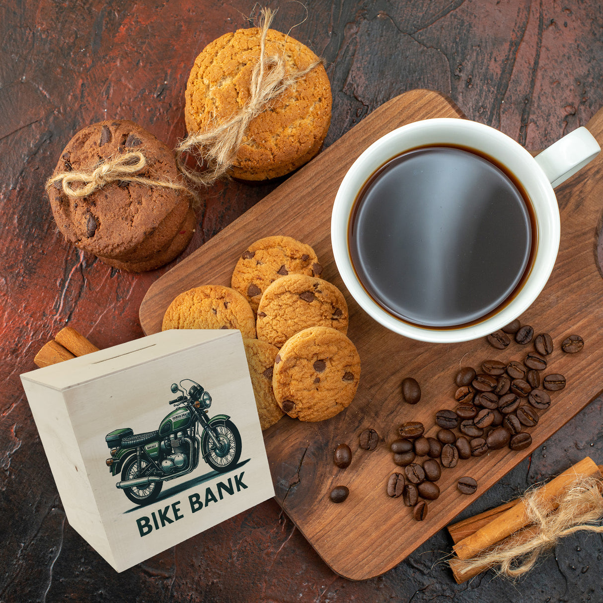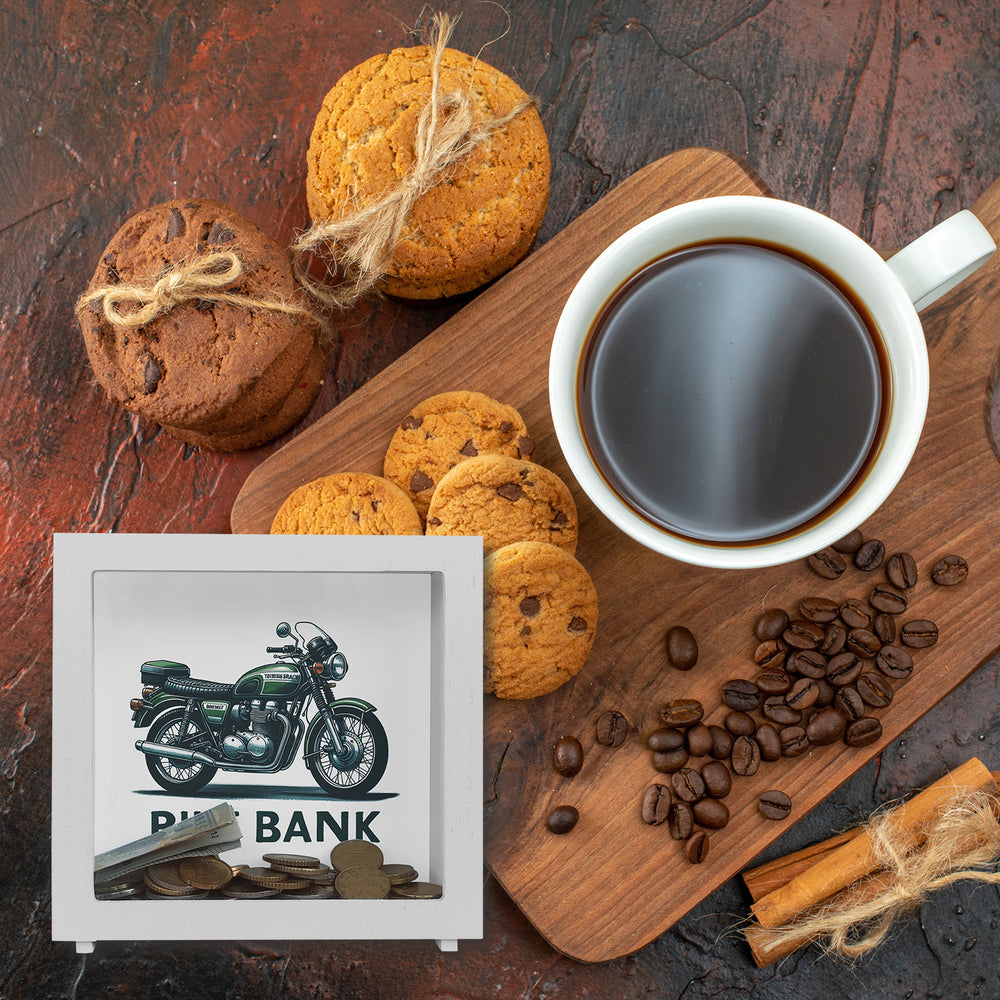 Cafe Racer Motorrad Spardose mit Spruch Bike Bank