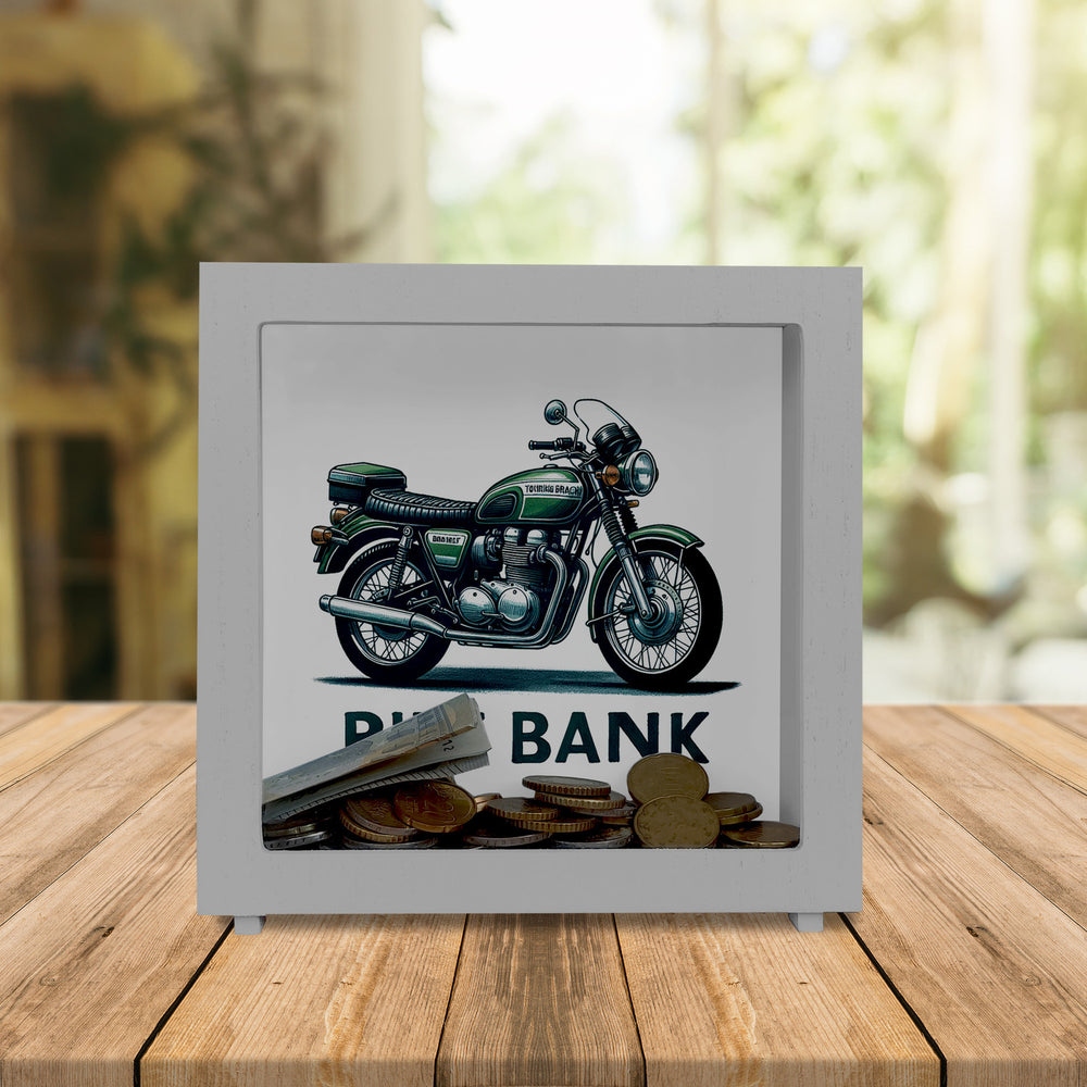 Bike Bank Spardose zum Thema Motorradkauf und Motorrad fahren