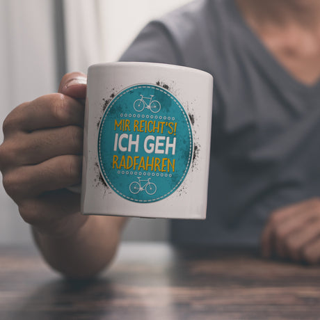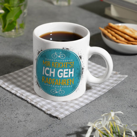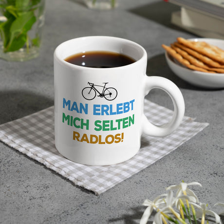 Man erlebt mich selten radlos Kaffeebecher mit Fahrrad Motiv