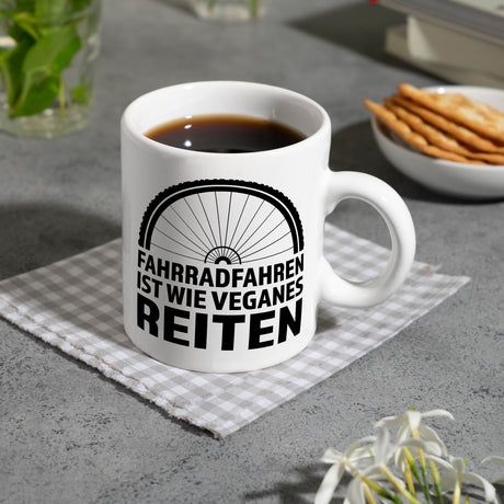 Ab €8,95Grundpreis /Nicht verfügbarAuf LagerFahrradfahren ist wie veganes Reiten Kaffeebecher für Radler