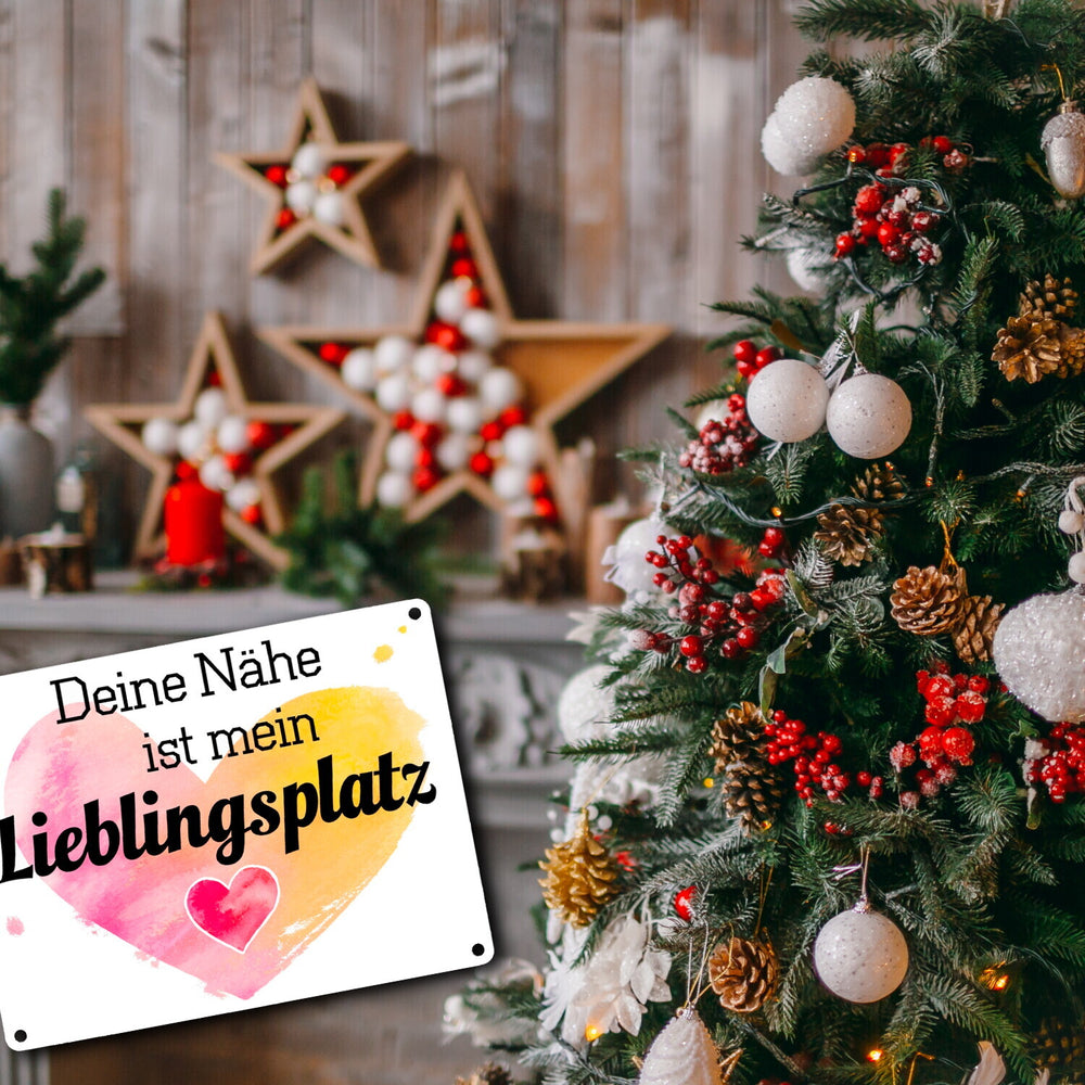 - 1x Deine Nähe ist mein Lieblingsplatz Metallschild in 15x20 cm in der gewählten Größe