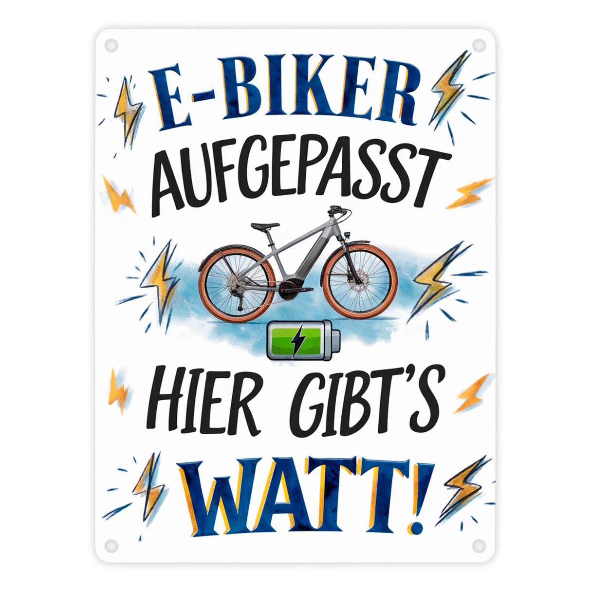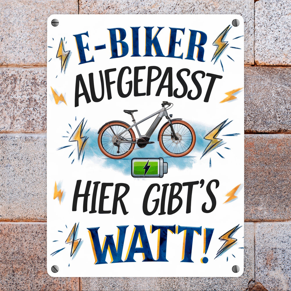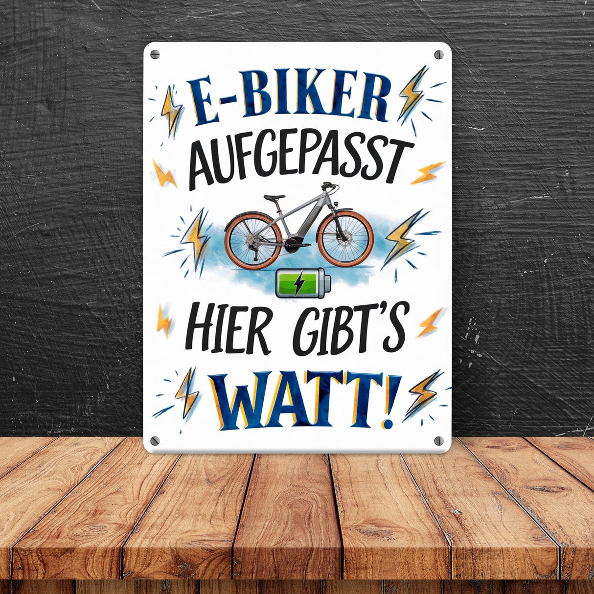 E-Biker hier gibt es Watt! Metallschild in 15x20 cm