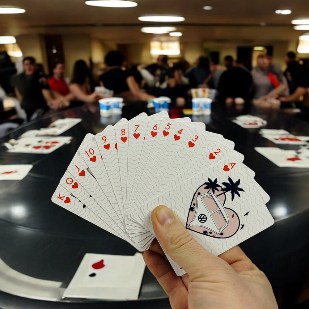 - Spüre die Abenteuerlust beim Spielen mit den Volkswagen VW T1 Camper Bus Spielkarten – perfekt für Surfer, Traveller und Familien! Dieses Kartenset bringt den Retro-Charme des ikonischen VW Busses direkt auf den Tisch. Ideal für Partys, Reisen oder gemütliche Abende mit Freunden und Familie. Ein echter Klassiker!