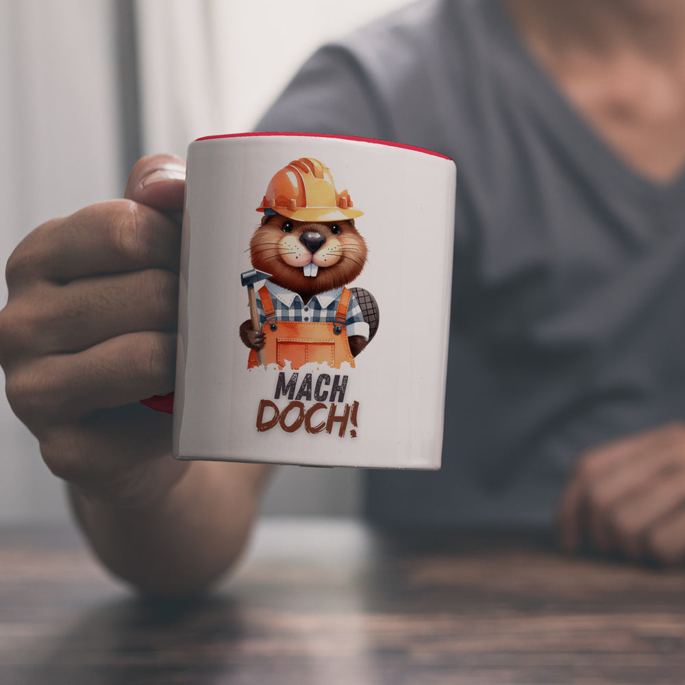 - Dieser lustige Biber Kaffeebecher bringt Schwung in jede Frühstückspause! Mit seinem Spruch "Mach doch!" und einem Biber, der stolz seine Bauarbeiterhose und Helm trägt, ist er der perfekte Begleiter für jeden Bauarbeiter.