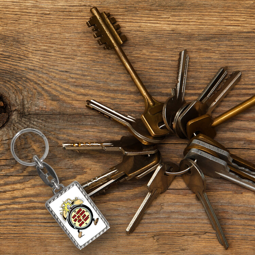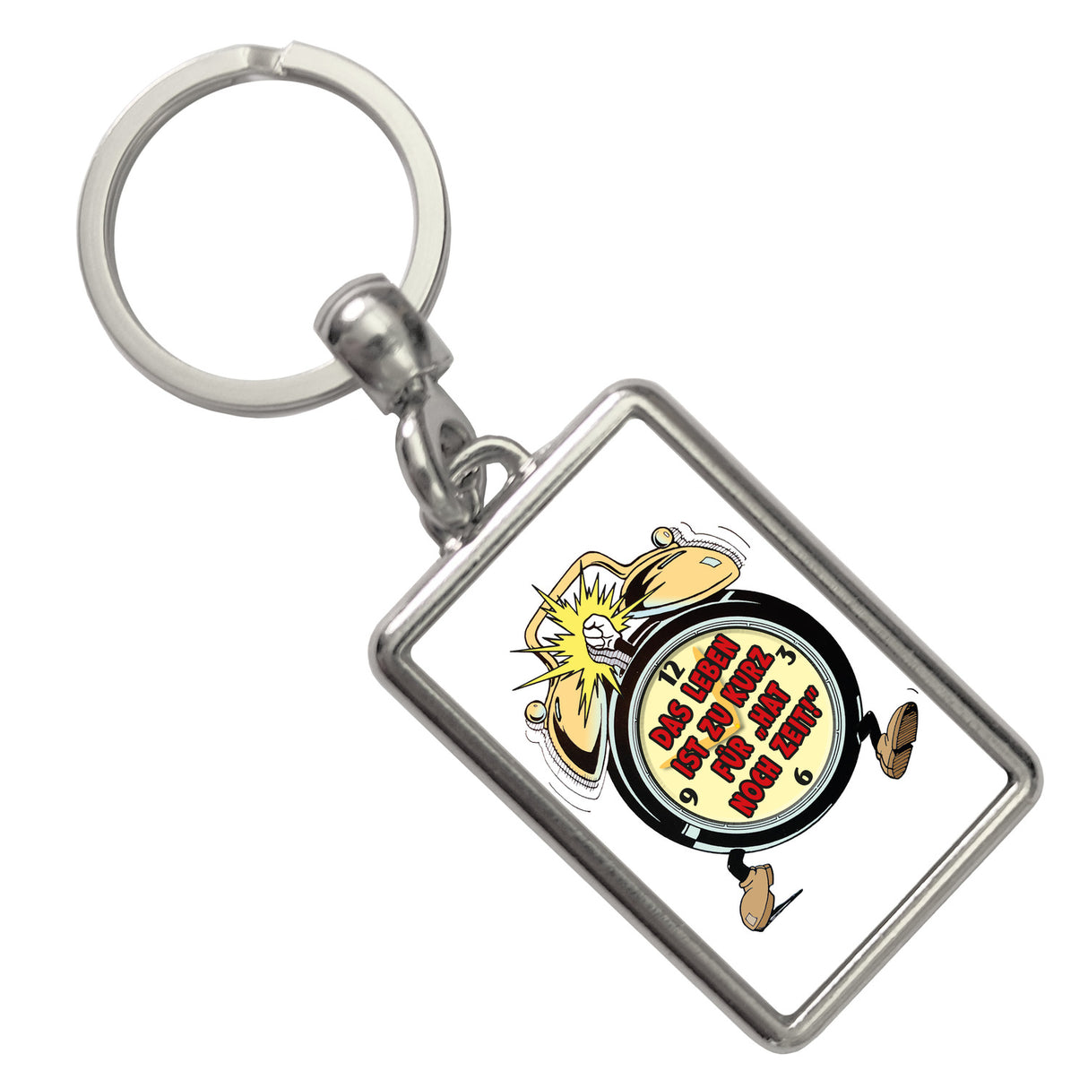- Der Schlüsselanhänger zeigt einen witzigen alten Wecker mit Comicfüßchen, der wild vibriert. Eine Comichand schnellt hin und her über den Wecker. Mit dem lustigen Spruch "Das Leben ist zu kurz für hat noch Zeit!" sorgt dieser Anhänger für ein Schmunzeln und gute Laune bei jedem Blick darauf.