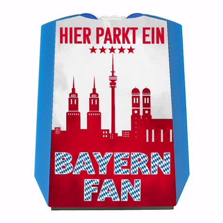 Hier parkt ein Bayern Fan Parkscheibe in Vereinsfarben
