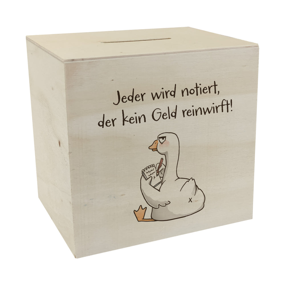 • 1x Gilbert die Gans Spardose mit Spruch Notiert wer kein Geld einwirft in der gewählten Ausführung
