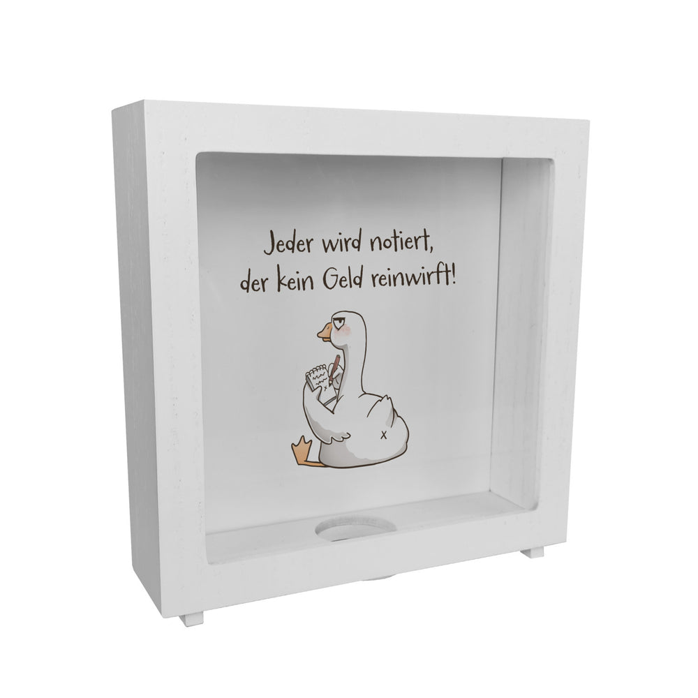 Gilbert die Gans Spardose mit Spruch Notiert wer kein Geld einwirft