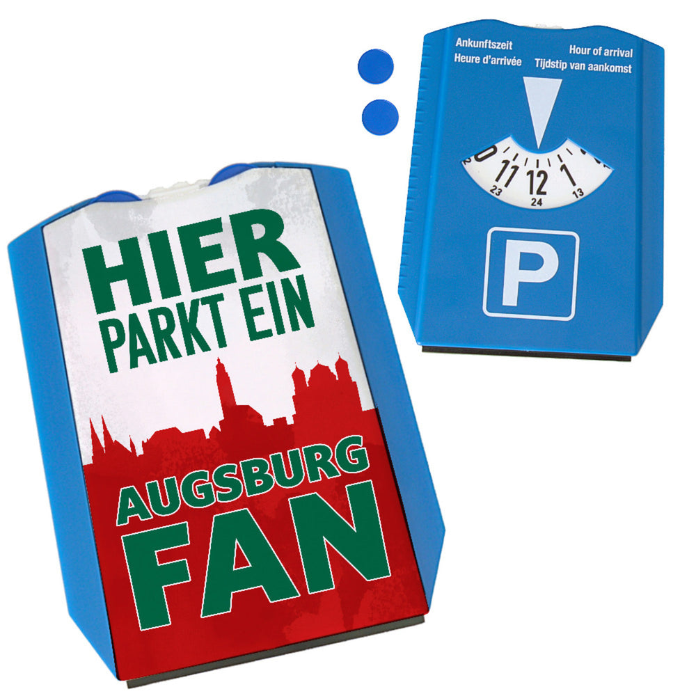 Hier parkt ein Augsburg Fan Parkscheibe in Rot Weiß Grün