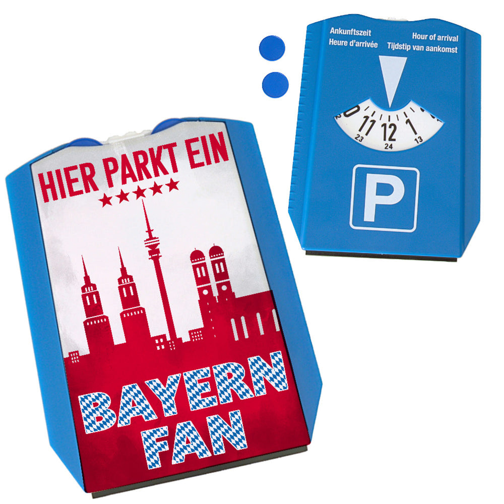 Hier parkt ein Bayern Fan Parkscheibe in Vereinsfarben