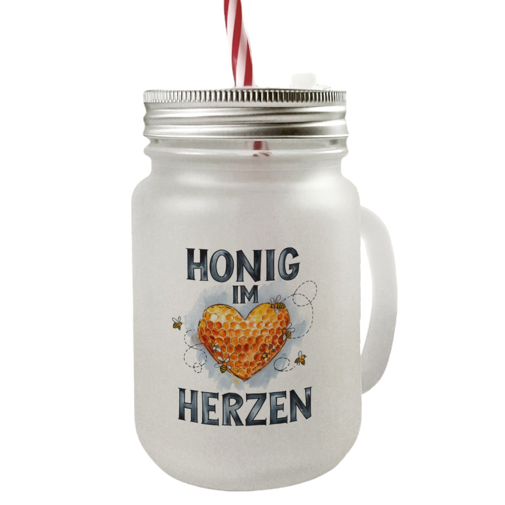 - 1x Honig im Herzen Trinkglas mit Bambusdeckel Herz Honigwaben mit Bambusdeckel oder Henkel
