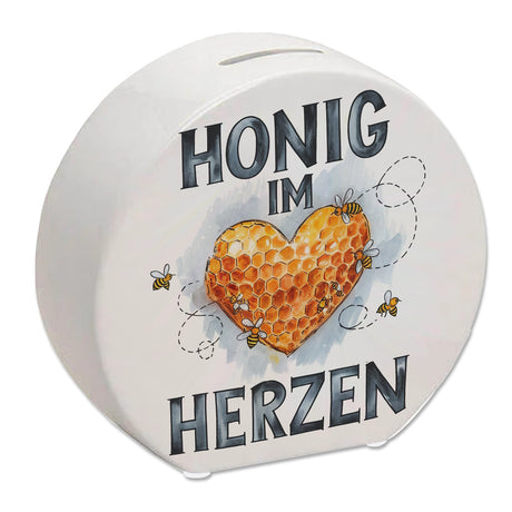 - Dieses Glas ist ein wahrer Hingucker! Mit einem bezaubernden Aquarell-Pastell-Design schmückt es sich mit einem herzförmigen Honigwabenmuster. Umgeben von summenden Bienen und dem Spruch "HONIG IM HERZEN" in großen, schwarzen Buchstaben, strahlt es Süße und Liebe aus. Ein sanfter Hellblau-weißere Hintergrund macht das Motiv perfekt.