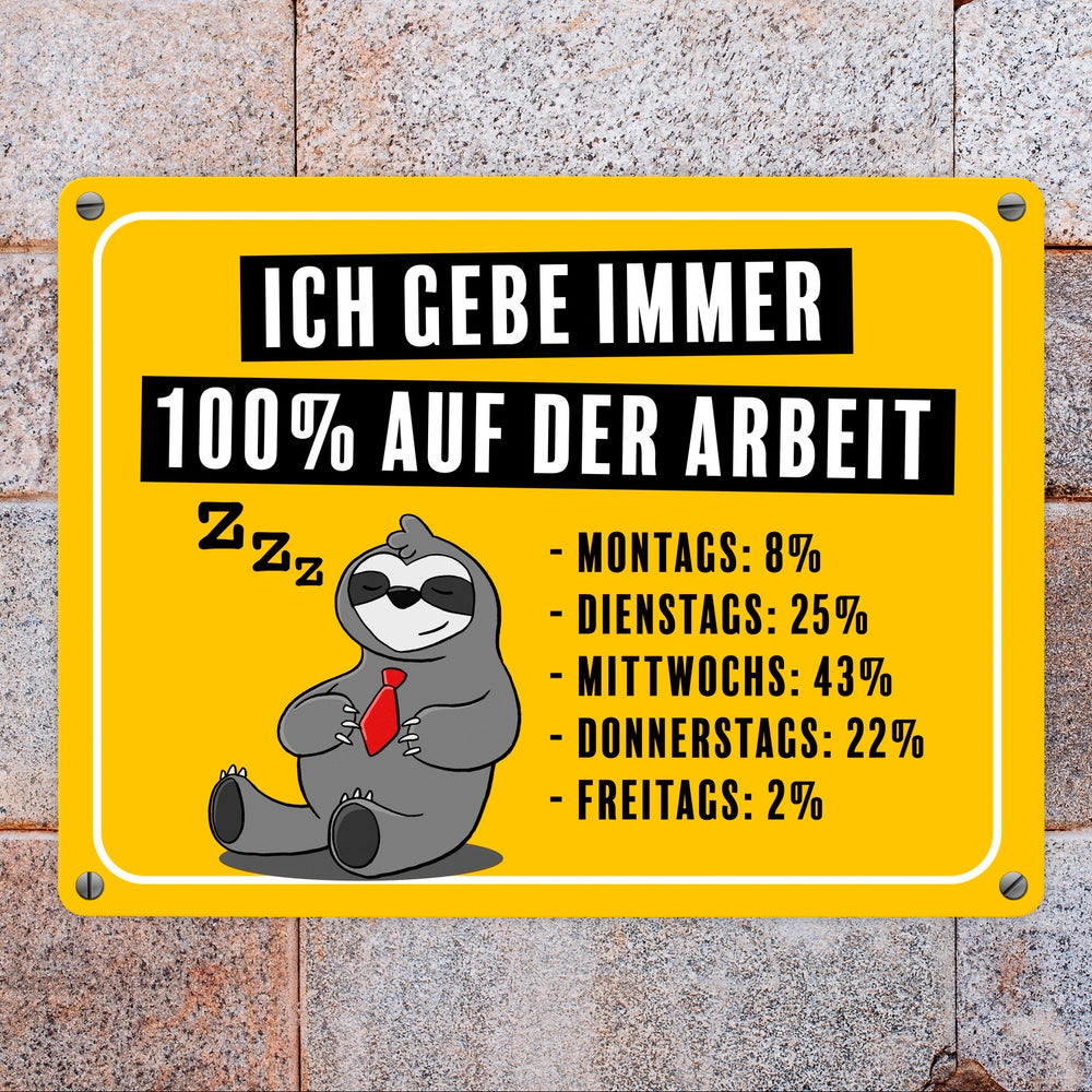 - 1x Ich gebe immer 100% auf der Arbeit Metallschild mit schnarchendem Faultier in der gewählten Größe