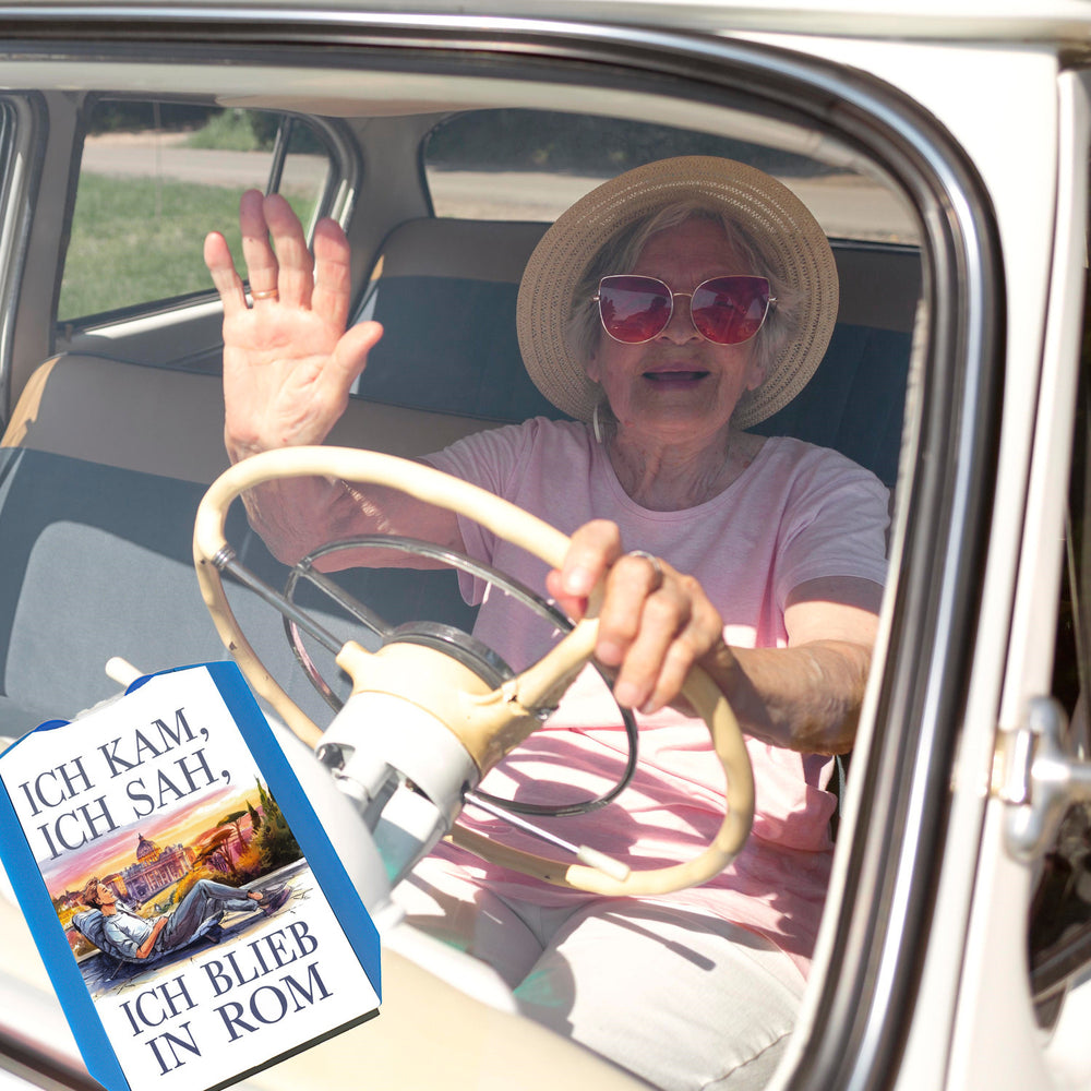 - Diese Parkscheibe begeistert mit einem charmanten Design: Ein entspannter Reisender genießt den Sonnenuntergang vor der malerischen römischen Skyline. Auf einem weißen Hintergrund tanzen Aquarellfarben und der witzige Spruch "ICH KAM, ICH SAH, ICH BLIEB IN ROM" zieht alle Blicke auf sich. Ein tolles Accessoire für Auto und Abenteurerherz!