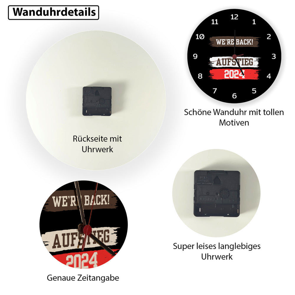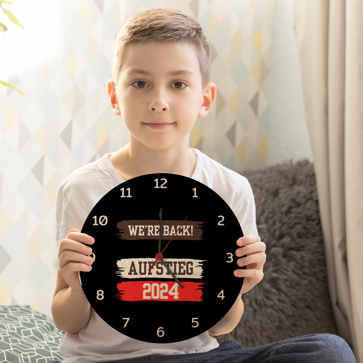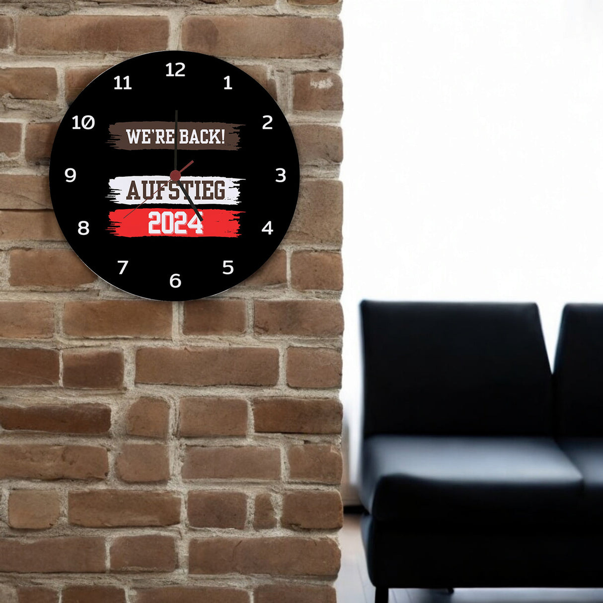 - 1x St. Pauli Aufstieg 2024 Wanduhr mit Spruch We're back in der gewählten Variante
