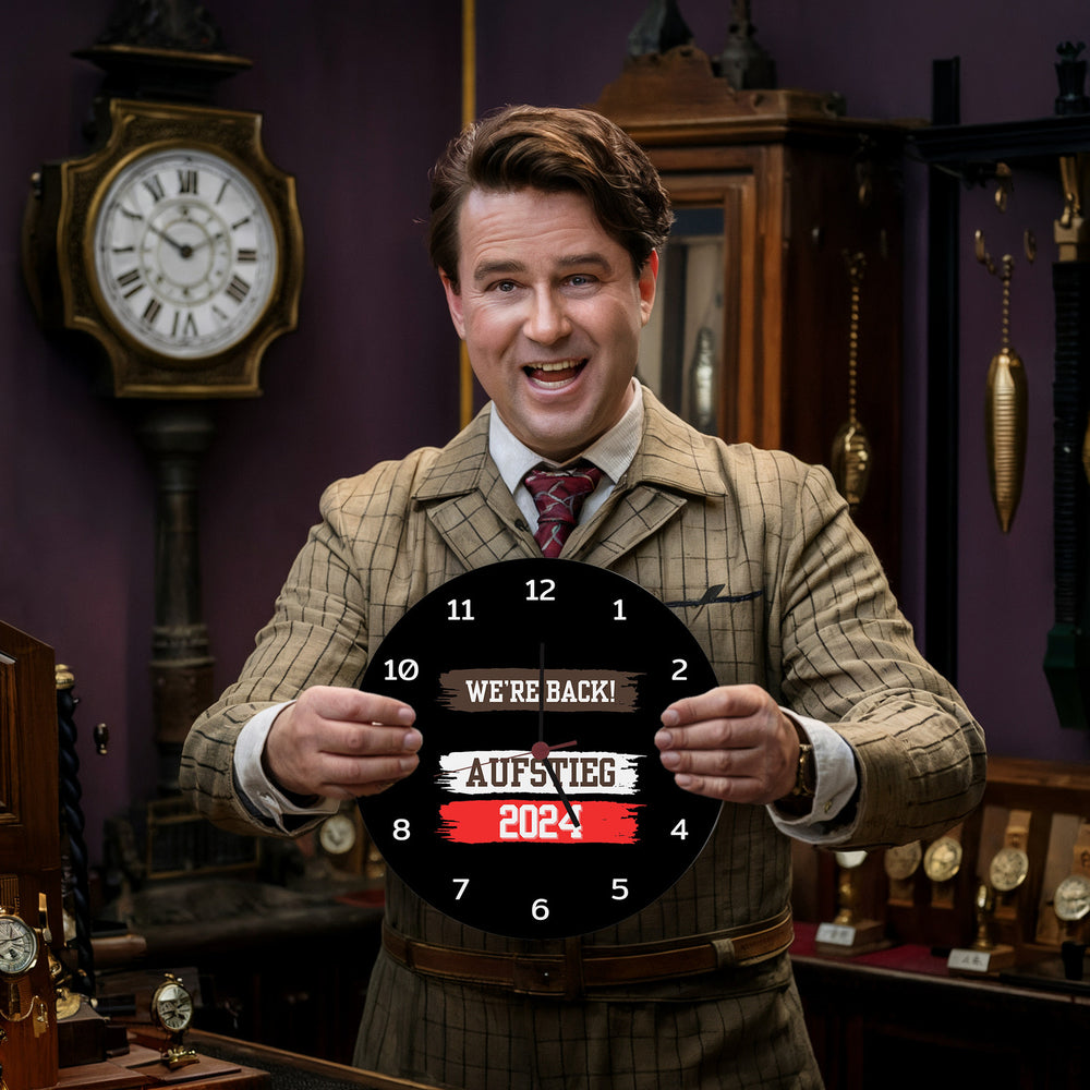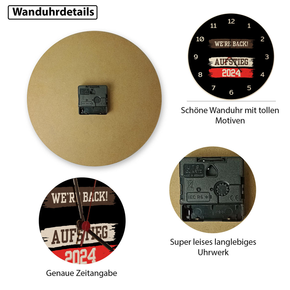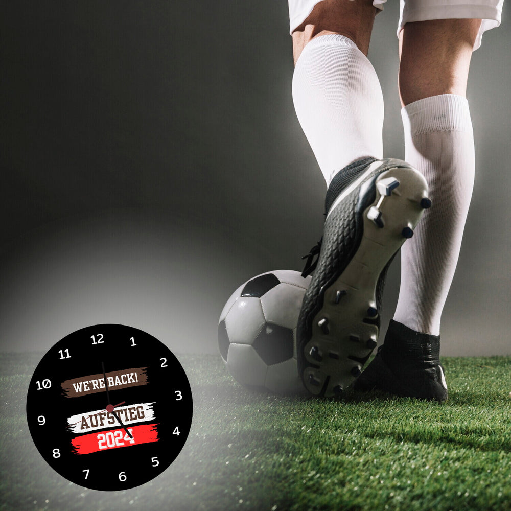 - 1x St. Pauli Aufstieg 2024 Wanduhr mit Spruch We're back in der gewählten Variante